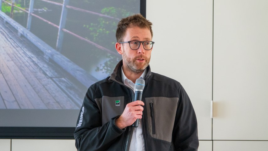Na deze indrukwekkende demonstraties was het woord aan André van der Ent, processpecialist massief. Hij ging in op de nieuwste ontwikkelingen in automatisering binnen WEINIG en op de Conturex. Een aantal zaken die werden belicht waren 3D klemberekening, 3D simulatie, sponningklemmen en WEINIG App Suite (monitoren van productie-, service- en machinedata). Ook het nieuwe besturingssysteem WMC (WEINIG Machine Control) werd verder uitgelicht.